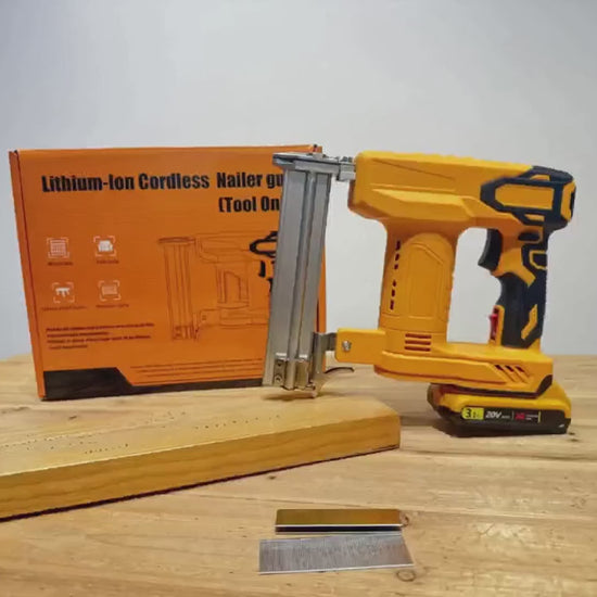 - 【Safety Design】Cordless nail gun utilises the double protection mechanism of switch and safety contact. Only when the switch is actuated and the safety contact is fully pressed onto the object surface can the battery nail gun be activated and fired to prevent accidents caused by a false start.Practical safety nose prevents accidental triggering and does not damage work surfaces.
