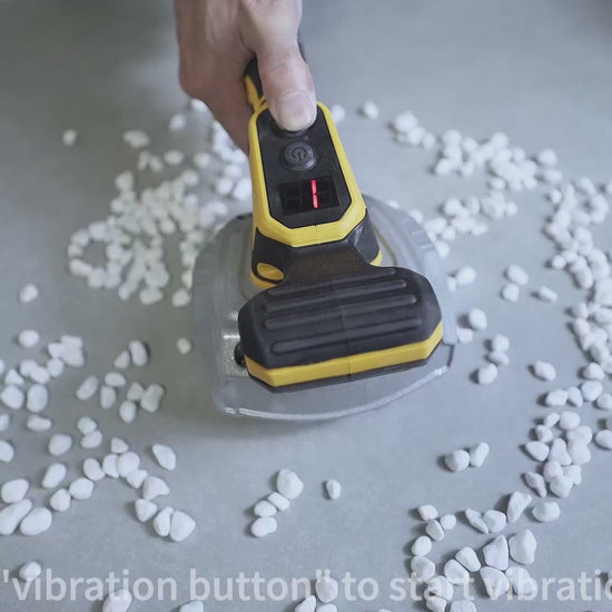 Cordless tile vibration tool is engineered to accommodate tiles of various sizes